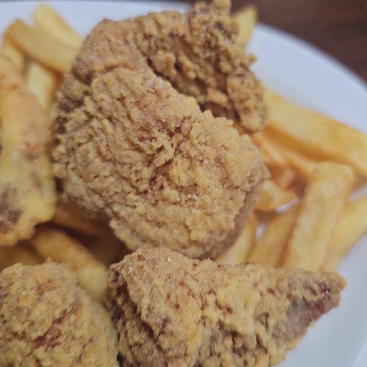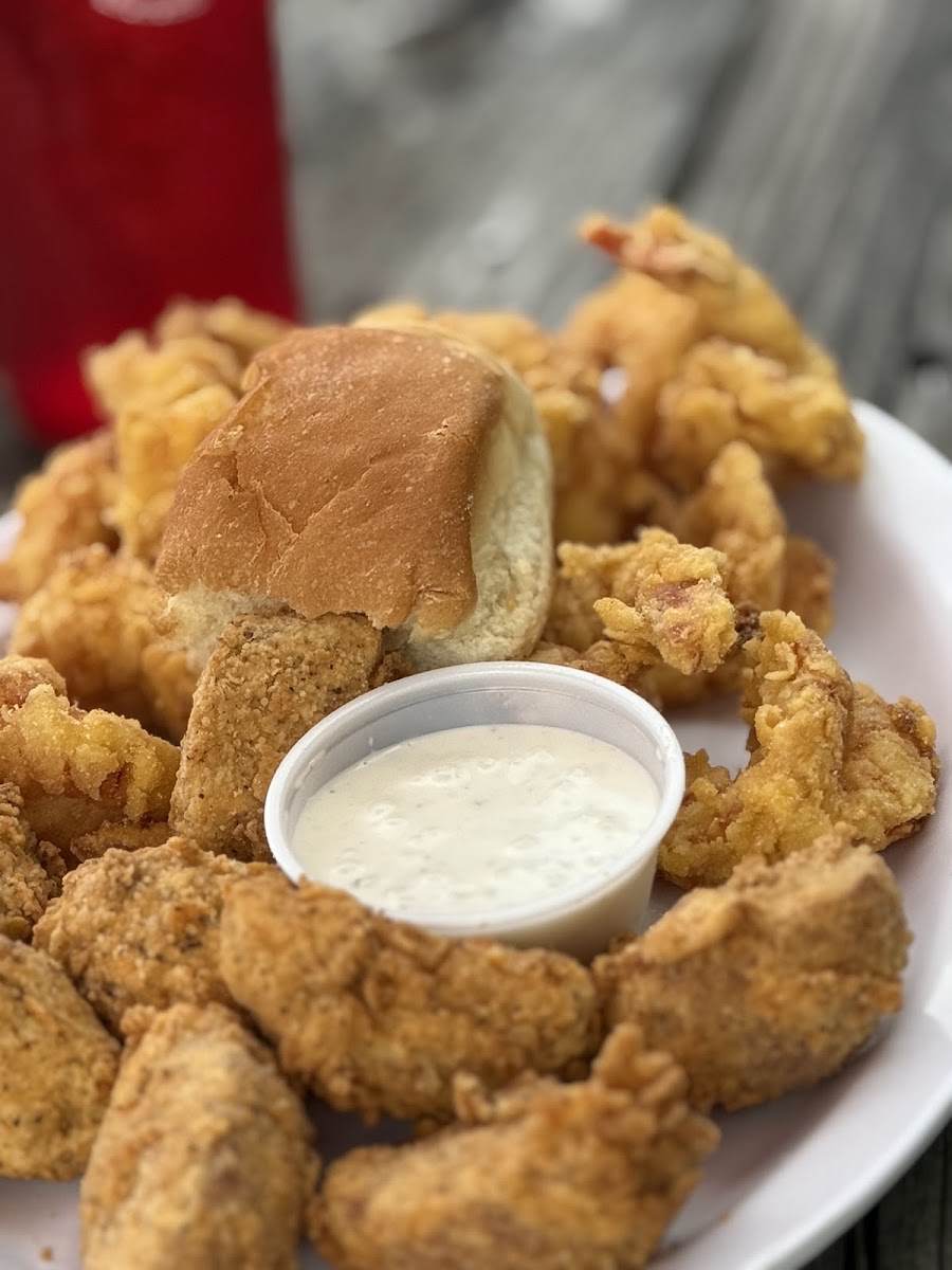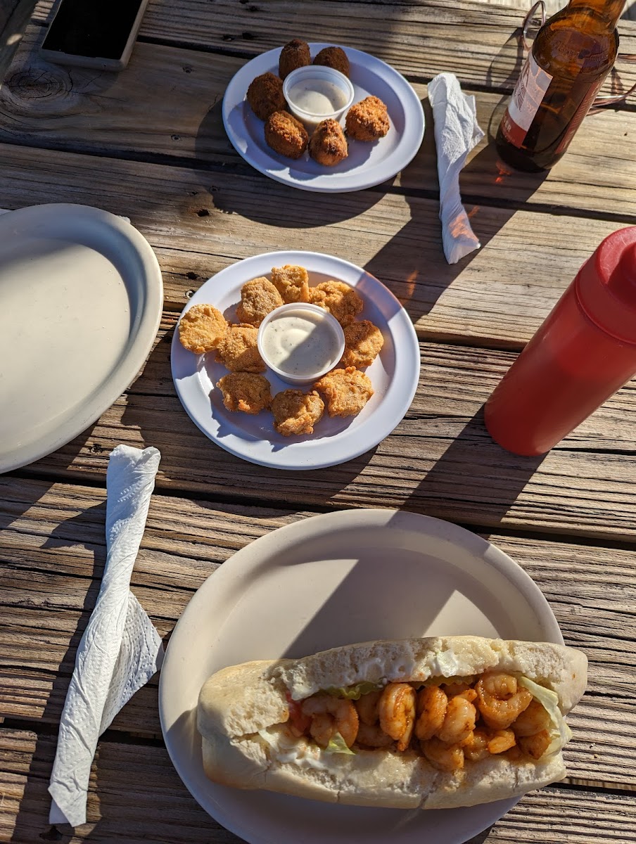 grilled shrimp a little overcooked crabcake could use a little bit more crab taste to it. The potato balls were good fried shrimp. in that area, it does have the charm of being on the water and wildlife. maybe change up the batter and and some cajun spice to it and watch the cook time on the seafood. it’s worth the stop